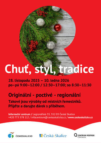 V Informační centru od 28.11.2025 do 10. 1. 2026 / po–pá 9:00–12:00, 12:30–17:00, so 8:30–11:30 hodin
