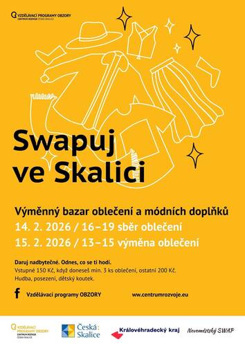 sobota 14. 2. / 16:00–19:00 (sběr oblečení), neděle 15. 2. / 13:00–15:00 (výměna)