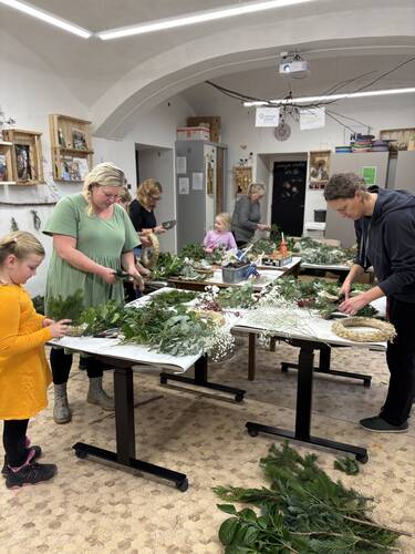 Velmi povedené bylo i podzimní tvoření, které už zavonělo Vánocemi. Z nepřeberného množství přírodních materiálů z našeho okolí se tvořily okrasné i adventní věnce, svícny, zápichy a další dekorace. To vše bez práce (vyjma té kreativní), nepořádku (ten za vás uklidíme my) a s celodenním občerstvením.